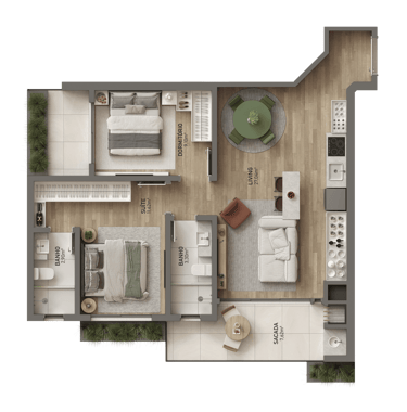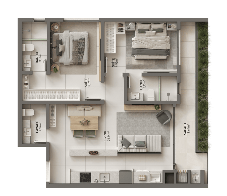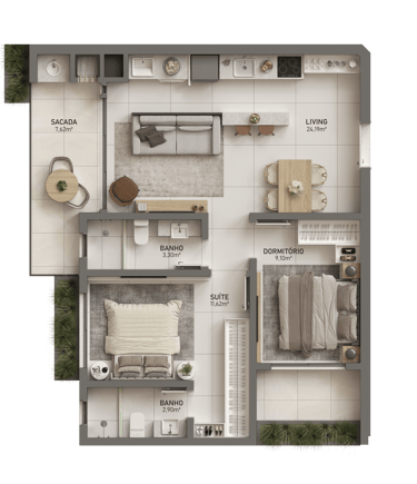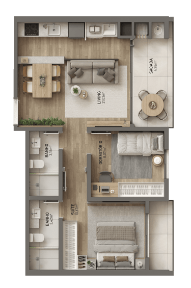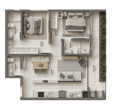 🟢 Plantas com 2 suítes ou 1 suíte + 1 dormitório