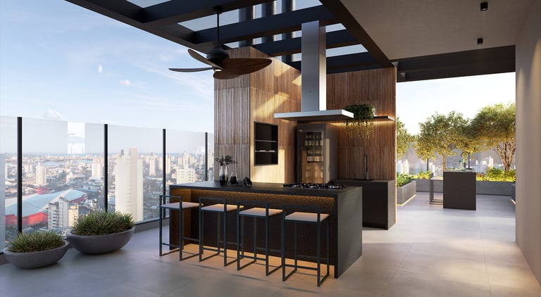 🟢 Mais de 1.800 m² de lazer, incluindo: piscinas, academia, espaço gourmet, rooftop, coworking e minimercado