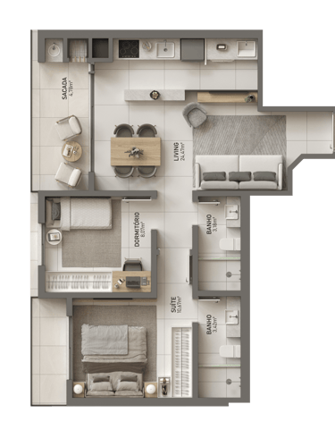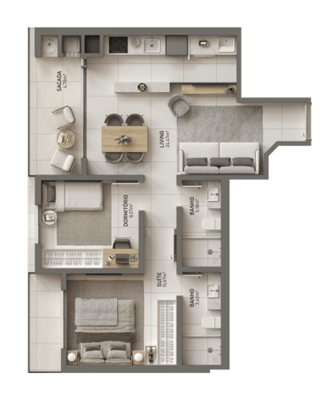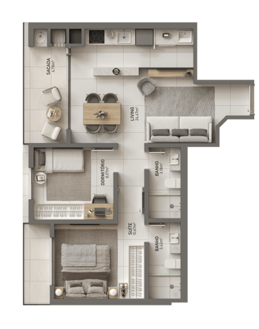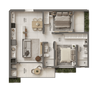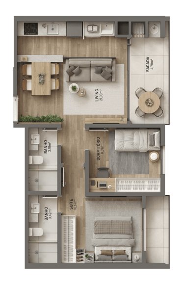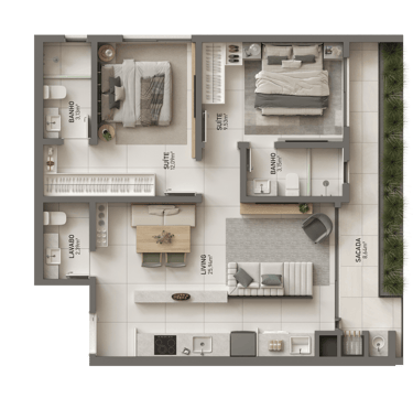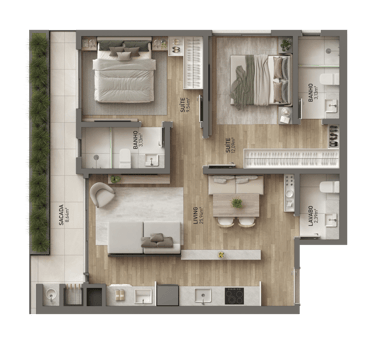 🟢 Plantas com 2 suítes ou 1 suíte + 1 dormitório