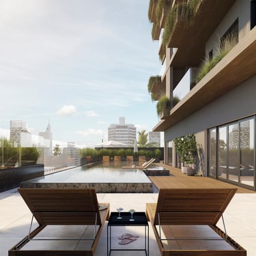 🟢 Mais de 1.800 m² de lazer, incluindo: piscinas, academia, espaço gourmet, rooftop, coworking e minimercado